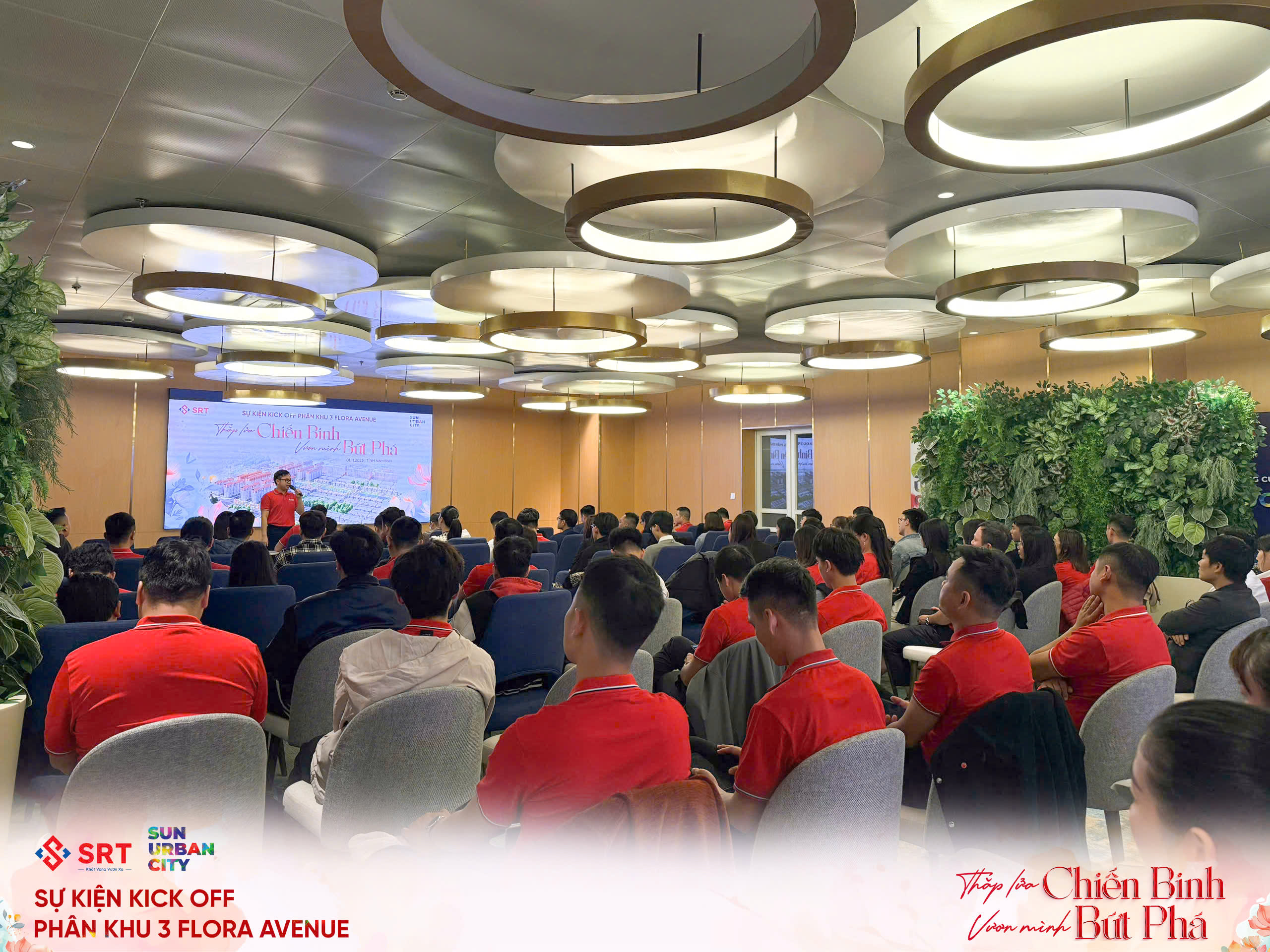 Ngày 01/11/2025, SRT Miền Bắc đã tổ chức Lễ Kick-off vô cùng bùng nổ cho phân khu Flora Avenue – “Trái tim rực rỡ” của đại đô thị Sun Urban City Hà Nam. Sự kiện đã quy tụ gần 200 chiến binh kinh doanh ưu tú, thể hiện khí thế sục sôi và quyết tâm chinh phục mục tiêu lớn.